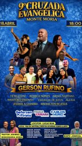 Além de Gerson Rufino, a programação contará com apresentações de Tetelestai, Rebeca Nunes, Israel Santana, Ministério Shekinah, Emerson de Jesus, Alexia, Jesimiel, Leandro e Risonilton de Jesus.